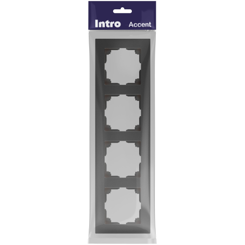 Рамка для розеток и выключателей 4-постовая универсальная пластик серии Intro Accent цвет графит 6-504-07. Рамка выполнена из термопласта. Устанавливается на 4 устройства серии Intro Accent, смонтированных в подрозетники.