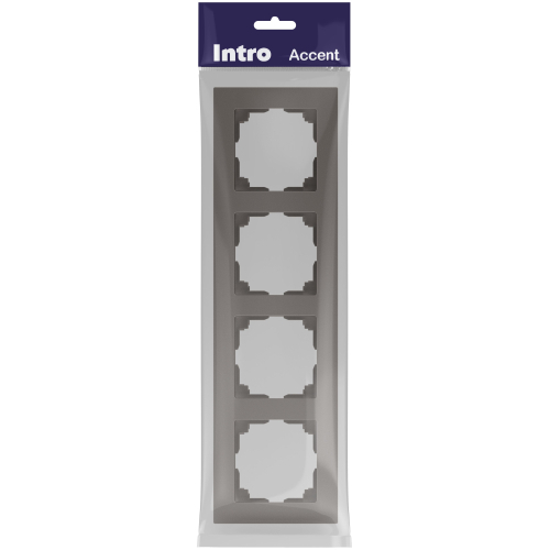 Рамка для розеток и выключателей 4-постовая универсальная пластик серии Intro Accent цвет титан 6-504-09. Рамка выполнена из термопласта. Устанавливается на 4 устройства серии Intro Accent, смонтированных в подрозетники.