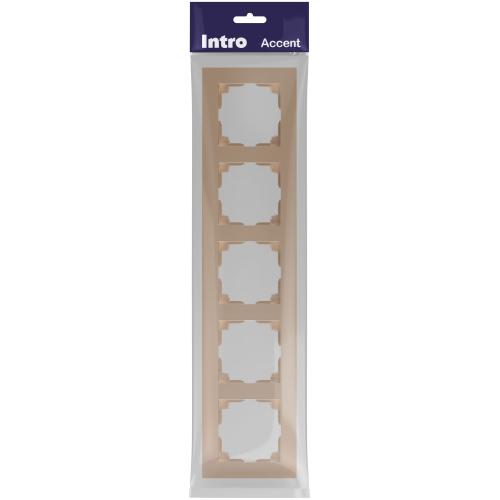 Рамка для розеток и выключателей 5-постовая универсальная пластик серии Intro Accent цвет шампань 6-505-04. Рамка выполнена из термопласта. Устанавливается на 5 устройств серии Intro Accent, смонтированных в подрозетники.