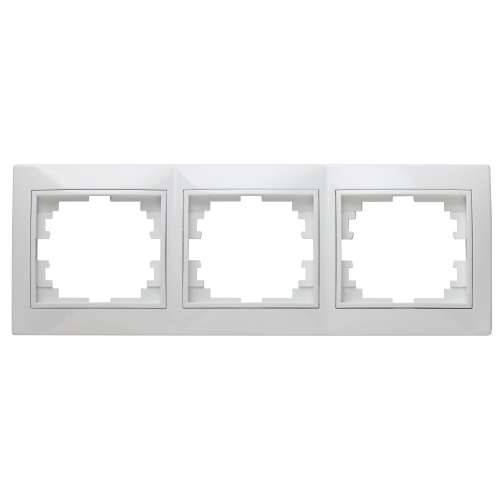 Рамка выполнена из термопласта. Устанавливается на 3 устройства серии Intro Plano, смонтированные в два горизонтально установленных подрозетника.