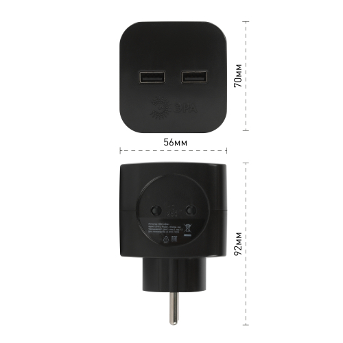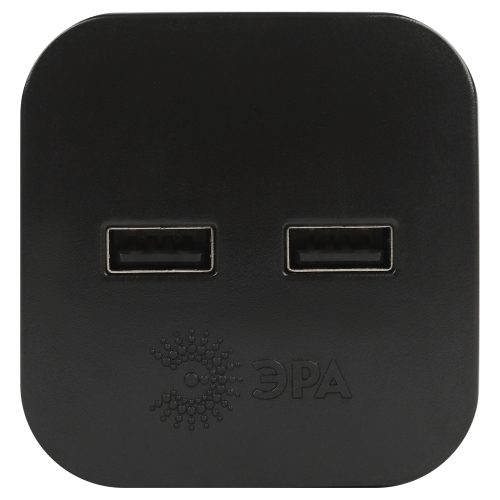 Тройник (адаптер) ЭРА с 2-мя розетками и 2-мя USB гнездами для зарядки портативных устройств. Идеален для зарядки мобильных телефонов и планшетов. Особенно актуален, когда в помещении мало источников подключения - можно из одной розетки сделать две и при этом ещё заряжать 2 устройства одновременно через USB. Максимальная мощность USB разъемов: 2400 мА.