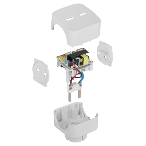 Тройник (адаптер) ЭРА с 2-мя розетками и 2-мя USB гнездами для зарядки портативных устройств. Идеален для зарядки мобильных телефонов и планшетов. Особенно актуален, когда в помещении мало источников подключения - можно из одной розетки сделать две и при этом ещё заряжать 2 устройства одновременно через USB. Максимальная мощность USB разъемов: 2400 мА.