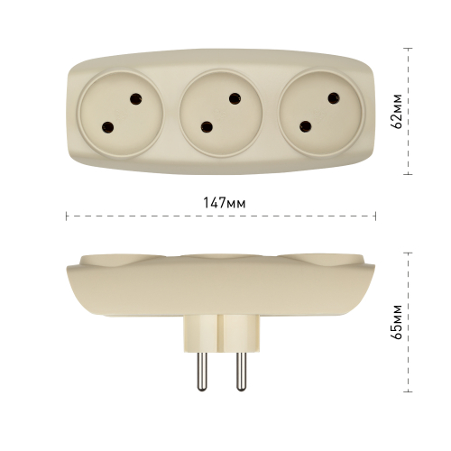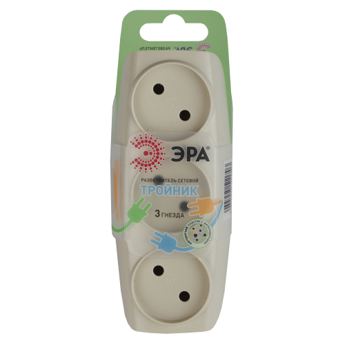 Разветвитель электрический Эра SP-3-I без заземления, 3 розетки, слоновая кость. Если в Вашем доме недостаточно розеток, чтобы одновременно подключить несколько электроприборов, то тройник марки Эра станет Вашим надежным помощником. Электрический разветвитель расчитан на максимальную мощность 16А/3500Вт. Корпус выполнен из ударопрочного и негорючего пластика (поликарбонат). Модель тройника на 16А позволяет подключить мощные бытовые приборы общей нагрузкой до 3500Вт. Не бойтесь включить чайник, обогреватель или микроволновку. Дизайн разработан в России командой Эра Style.