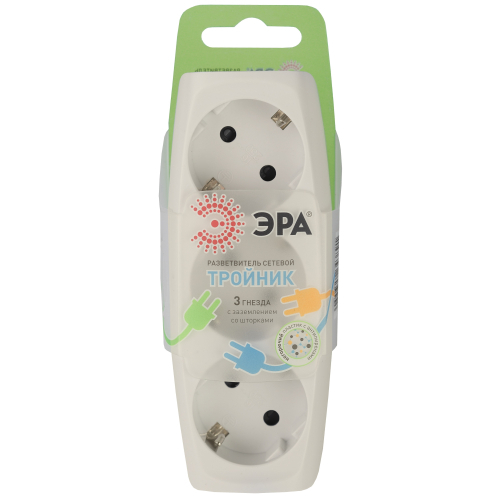 Разветвитель электрический Эра SP-3e-I с заземлением, 3 розетки, слоновая кость. Если в Вашем доме недостаточно розеток, чтобы одновременно подключить несколько электроприборов, то тройник марки Эра станет Вашим надежным помощником. Электрический разветвитель расчитан на максимальную мощность 16А/3500Вт. Корпус выполнен из ударопрочного и негорючего пластика (поликарбонат). Модель тройника на 16А позволяет подключить мощные бытовые приборы общей нагрузкой до 3500Вт. Не бойтесь включить чайник, обогреватель или микроволновку. Дизайн разработан в России командой Эра Style.