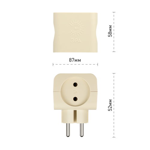Разветвитель электрический Эра SP-4-I без заземления, 4 розетки, слоновая кость. Если в Вашем доме недостаточно розеток, чтобы одновременно подключить несколько электроприборов, то тройник марки Эра станет Вашим надежным помощником. Электрический разветвитель расчитан на максимальную мощность 16А/3500Вт. Корпус выполнен из ударопрочного и негорючего пластика (поликарбонат). Модель тройника на 16А позволяет подключить мощные бытовые приборы общей нагрузкой до 3500Вт. Не бойтесь включить чайник, обогреватель или микроволновку. Дизайн разработан в России командой Эра Style.