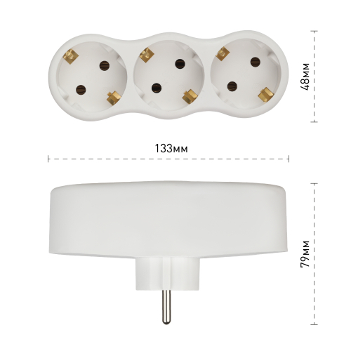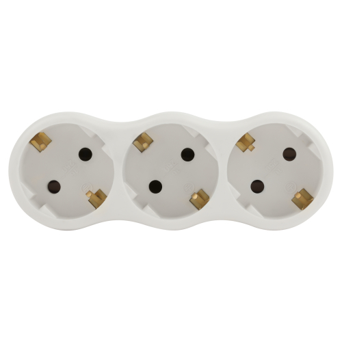Разветвитель электрический Эра SPx-3e-W с заземлением, 3 розетки, белый. Если в Вашем доме недостаточно розеток, чтобы одновременно подключить несколько электроприборов, то тройник марки Эра станет Вашим надежным помощником. Электрический разветвитель рассчитан на максимальную мощность 16А/3500Вт. Корпус выполнен из ударопрочного и негорючего пластика (поликарбонат). Модель тройника на 16А позволяет подключить мощные бытовые приборы общей нагрузкой до 3500Вт. Не бойтесь включить чайник, обогреватель или микроволновку. Дизайн разработан в России командой Эра Style.