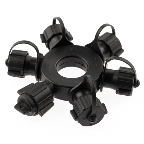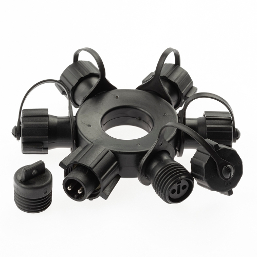 Профессиональный круговой разветвитель ЭРА ERAPS-OR для уличного новогоднего освещения. Круговой разветвитель для уличной гирлянды имеет 6 гнезд для подключения гирлянд в формате конструктора. Диаметр разветвителя - 13 см. Изготовлен из каучука - прочного морозостойкого материала. Разветвитель профессиональный для уличных гирлянд дает возможность максимально широко решать дизайнерские задачи в новогодней иллюминации улиц, фасадов зданий, деревьев, новогодних ярмарок, новогодних площадей, зимних городков, уличных веранд кафе и ресторанов, загородных домов, коттеджей. Надежный уличный разветвитель совместим с профессиональными гирляндами IP65 большинства производителей. Монтаж уличного освещения, соединение в единую линию и демонтаж безопасны даже для любителя. А профессиональные светотехники и дизайнеры с помощью профессионального новогоднего освещения ЭРА могут легко создавать масштабные креативные LED-инсталляции. Профессиональное новогоднее освещение ЭРА производится на заводах мирового уровня и является светотехникой высочайшего класса. Это позволяет применять такую иллюминацию очень широко, в том числе для освещения муниципальных объектов, крупных торговых и бизнес-центров.