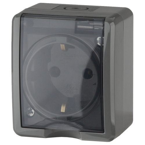 Розетка IP54 серии Эра Эксперт открытой установки цвет серый 11-2401-03 . Номинальные характеристики 16А 250В . Устройство выполнено из качественного поликарбоната, оснащёно уникальными винтовыми клеммами ЭКСПЕРТ для максимально качественного зажима кабеля в механизме.