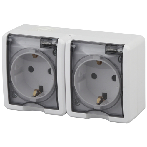 Розетка двойная IP54 серии Эра Эксперт открытой установки цвет белый 11-2403-01. Номинальные характеристики 16А 250В. Устройство выполнено из качественного поликарбоната, оснащёно уникальными винтовыми клеммами ЭКСПЕРТ для максимально качественного зажима кабеля в механизме.