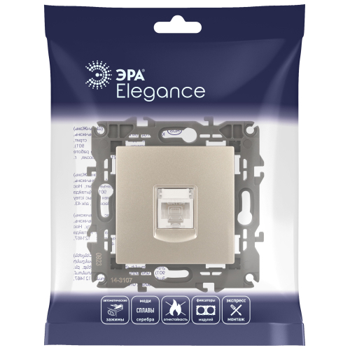 Розетка интернет RJ45 серии Эра Elegance цвет шампань 14-3107-04. Рамки приобретаются отдельно.