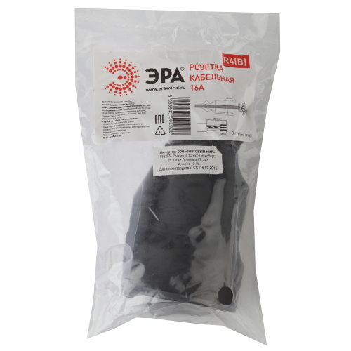 Розетка кабельная ЭРА R4(B), с заземлением, максимальная мощность - 16A/3500Вт (кабель до 3x1,5 мм2), поликарбонат