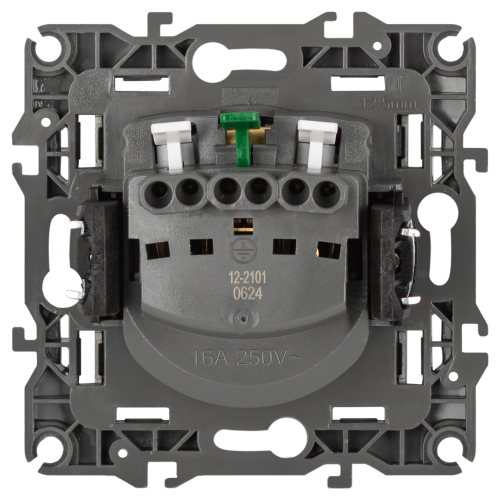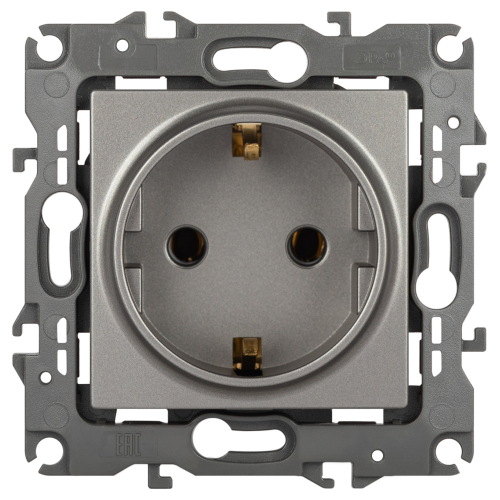 Розетка с заземлением серии Эра 12 скрытой установки механизм цвет титан 12-2101-16. Номинальные характеристики 16А 250В . Сделана из поликарбоната, оснащена автоматическими клеммами для быстрой и надёжной фиксации жил кабеля в механизме. Парные клеммы обеспечивают соединение шлейфом. Монтаж в подрозетник производится и на лапки, и на винты. Рамки приобретаются отдельно.