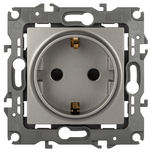 Розетка с заземлением со шторками серии Эра 12 скрытой установки механизм цвет титан 12-2102-16. Номинальные хар-ки 16А 250В . Сделана из поликарбоната, оснащена автоматическими клеммами для быстрой и надёжной фиксации жил кабеля в механизме. Парные клеммы обеспечивают соединение шлейфом. Монтаж в подрозетник производится и на лапки, и на винты. Рамки приобретаются отдельно.