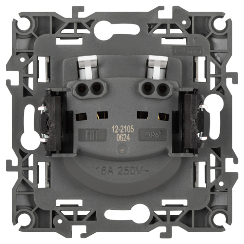 Розетка серии Эра 12 скрытой установки механизм цвет титан 12-2105-16. Номинальные характеристики 16А 250В. Сделана из поликарбоната, оснащена автоматическими клеммами для быстрой и надёжной фиксации жил кабеля в механизме. Парные клеммы обеспечивают соединение шлейфом. Монтаж в подрозетник производится и на лапки, и на винты. Рамки приобретаются отдельно.