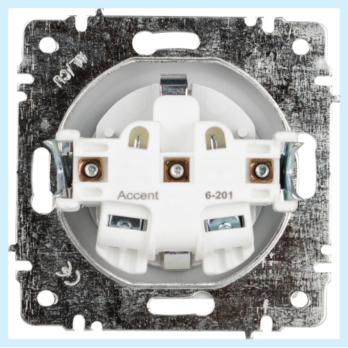 Розетка без заземления серии Intro Accent скрытой установки механизм цвет белый 6-201-01. Номинальные характеристики 16А 250В. Выполнена из негорючего термопласта, оснащена винтовыми клеммами. Парные клеммы обеспечивают соединение шлейфом. Монтаж в подрозетник производится и на лапки, и на винты. Рамка приобретается отдельно. В серии представлены рамки до 5 постов: на 1 пост - 6-501-хх, на 2 поста - 6-502-хх, на 3 поста - 6-503-хх, на 6 поста - 4-504-хх, на 5 постов - 6-505-хх (где хх - цветовой код: 01 - белый, 01М - матовый белый, 02 - слоновая кость, 03 - алюминий, 04 - шампань, 05 - антрацит, 06 - перламутр, 07 - графит, 08 - бронза, 09 - титан, 10 - венге, 11 - сосна)