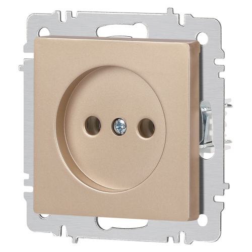 Розетка без заземления серии Intro Accent скрытой установки механизм цвет шампань 6-201-04. Номинальные характеристики 16А 250В. Выполнена из негорючего термопласта, подходит для медной и алюминиевой проводки, оснащена винтовыми клеммами. Парные клеммы обеспечивают соединение шлейфом. Монтаж в подрозетник производится и на лапки, и на винты. Рамка приобретается отдельно. В серии представлены рамки до 5 постов: на 1 пост - 6-501-хх, на 2 поста - 6-502-хх, на 3 поста - 6-503-хх, на 6 поста - 4-504-хх, на 5 постов - 6-505-хх (где хх - цветовой код: 01 - белый, 01М - матовый белый, 02 - слоновая кость, 03 - алюминий, 04 - шампань, 05 - антрацит, 06 - перламутр, 07 - графит, 08 - бронза, 09 - титан, 10 - венге, 11 - сосна)