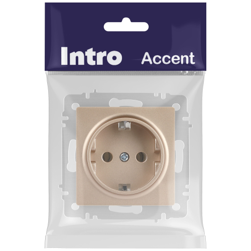 Розетка с заземлением серии Intro Accent скрытой установки механизм цвет шампань 6-202-04. Номинальные характеристики 16А 250В. Выполнена из негорючего термопласта, подходит для медной и алюминиевой проводки, оснащена винтовыми клеммами. Парные клеммы обеспечивают соединение шлейфом. Монтаж в подрозетник производится и на лапки, и на винты. Рамка приобретается отдельно. В серии представлены рамки до 5 постов: на 1 пост - 6-501-хх, на 2 поста - 6-502-хх, на 3 поста - 6-503-хх, на 6 поста - 4-504-хх, на 5 постов - 6-505-хх (где хх - цветовой код: 01 - белый, 01М - матовый белый, 02 - слоновая кость, 03 - алюминий, 04 - шампань, 05 - антрацит, 06 - перламутр, 07 - графит, 08 - бронза, 09 - титан, 10 - венге, 11 - сосна)