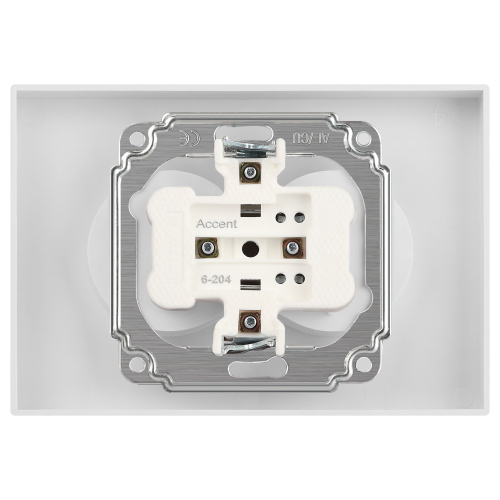 Розетка двойная без заземления серии Intro Accent скрытой установки цвет перламутр 6-204-06. Номинальные характеристики 16А 250В. Выполнена из негорючего термопласта, оснащена винтовыми клеммами. Парные клеммы обеспечивают соединение шлейфом. Монтаж в подрозетник производится и на лапки, и на винты.