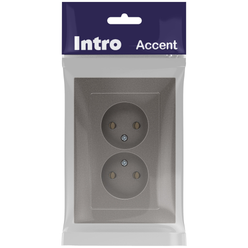 Розетка двойная без заземления серии Intro Accent скрытой установки цвет титан 6-204-09. Номинальные характеристики 16А 250В. Выполнена из негорючего термопласта, оснащена винтовыми клеммами. Парные клеммы обеспечивают соединение шлейфом. Монтаж в подрозетник производится и на лапки, и на винты.