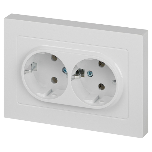 Розетка двойная с заземлением серии Intro Accent скрытой установки цвет белый 6-205-01. Номинальные характеристики 16А 250В. Выполнена из негорючего термопласта, оснащена винтовыми клеммами. Парные клеммы обеспечивают соединение шлейфом. Монтаж в подрозетник производится и на лапки, и на винты