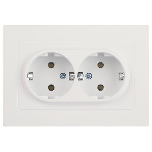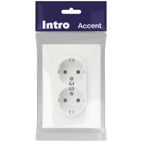 Розетка двойная с заземлением серии Intro Accent скрытой установки цвет белый матовый 6-205-01М. Номинальные характеристики 16А 250В. Выполнена из негорючего термопласта, оснащена винтовыми клеммами. Парные клеммы обеспечивают соединение шлейфом. Монтаж в подрозетник производится и на лапки, и на винты.