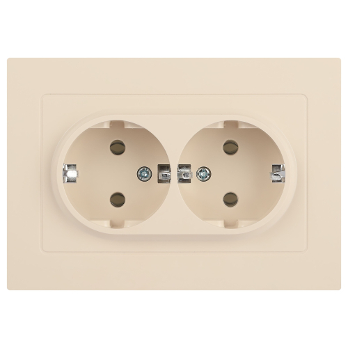 Розетка двойная с заземлением серии Intro Accent скрытой установки цвет слоновая кость 6-205-02. Номинальные характеристики 16А 250В. Выполнена из негорючего термопласта, оснащена винтовыми клеммами. Парные клеммы обеспечивают соединение шлейфом. Монтаж в подрозетник производится и на лапки, и на винты.