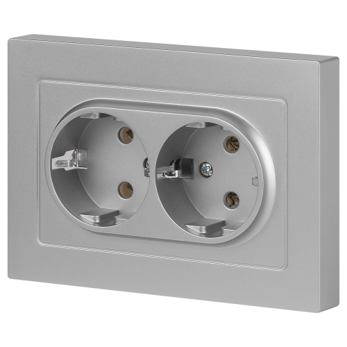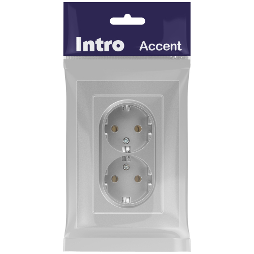Розетка двойная с заземлением серии Intro Accent скрытой установки цвет алюминий 6-205-03. Номинальные характеристики 16А 250В. Выполнена из негорючего термопласта, оснащена винтовыми клеммами. Парные клеммы обеспечивают соединение шлейфом. Монтаж в подрозетник производится и на лапки, и на винты.
