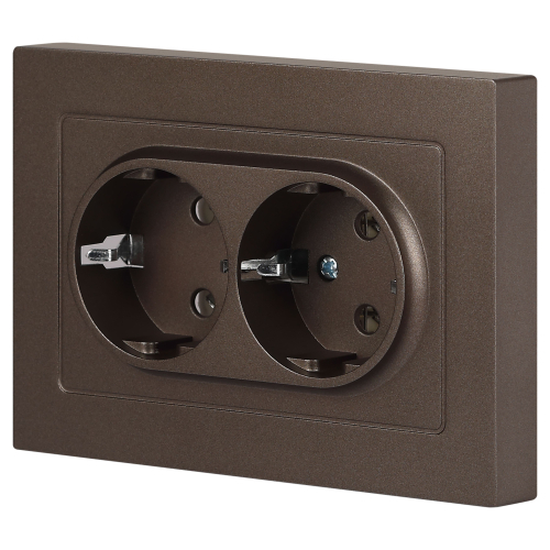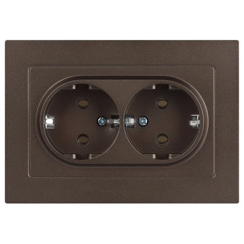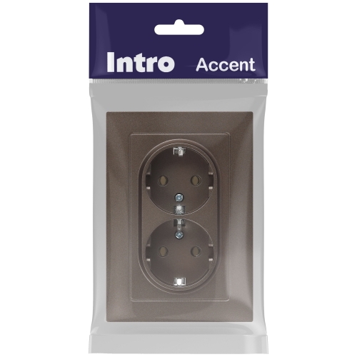Розетка двойная с заземлением серии Intro Accent скрытой установки механизм цвет бронза 6-205-08. Номинальные характеристики 16А 250В. Выполнена из негорючего термопласта, оснащена винтовыми клеммами. Парные клеммы обеспечивают соединение шлейфом. Монтаж в подрозетник производится и на лапки, и на винты.