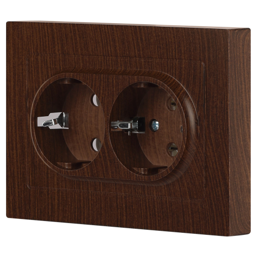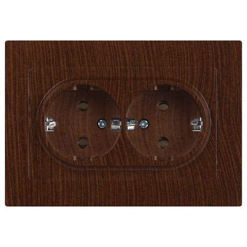Розетка двойная с заземлением серии Intro Accent скрытой установки цвет венге 6-205-10. Номинальные характеристики 16А 250В. Выполнена из негорючего термопласта, оснащена винтовыми клеммами. Парные клеммы обеспечивают соединение шлейфом. Монтаж в подрозетник производится и на лапки, и на винты.