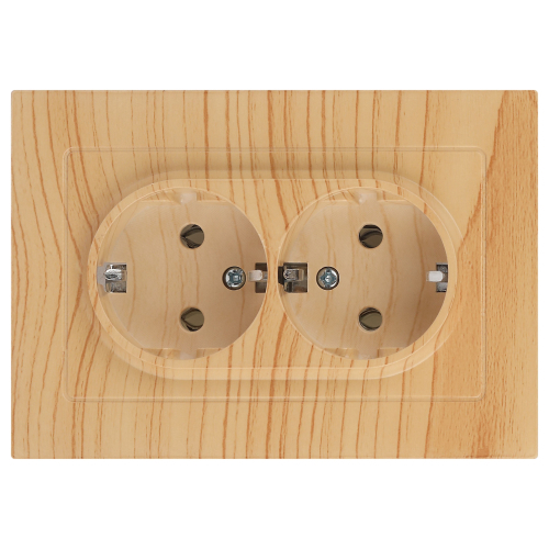 Розетка двойная с заземлением серии Intro Accent скрытой установки цвет сосна 6-205-11. Номинальные характеристики 16А 250В. Выполнена из негорючего термопласта, оснащена винтовыми клеммами. Парные клеммы обеспечивают соединение шлейфом. Монтаж в подрозетник производится и на лапки, и на винты.