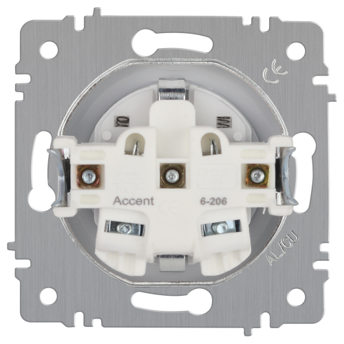 Розетка с заземлением со шторками серии Intro Accent скрытой установки механизм цвет белый 6-206-01. Номинальные характеристики 16А 250В. Выполнена из негорючего термопласта, оснащена винтовыми клеммами. Парные клеммы обеспечивают соединение шлейфом. Монтаж в подрозетник производится и на лапки, и на винты. Рамка приобретается отдельно. В серии представлены рамки до 5 постов: на 1 пост - 6-501-хх, на 2 поста - 6-502-хх, на 3 поста - 6-503-хх, на 6 поста - 4-504-хх, на 5 постов - 6-505-хх (где хх - цветовой код: 01 - белый, 01М - матовый белый, 02 - слоновая кость, 03 - алюминий, 04 - шампань, 05 - антрацит, 06 - перламутр, 07 - графит, 08 - бронза, 09 - титан, 10 - венге, 11 - сосна)