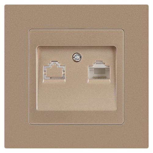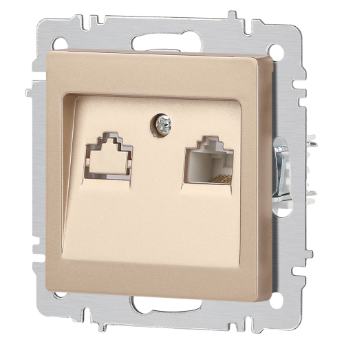 Розетка информационная серии Intro Accent скрытой установки механизм цвет шампань 6-303-04. Выполнена из негорючего термопласта. Монтаж в подрозетник производится и на лапки, и на винты. Рамка приобретается отдельно. В серии представлены рамки до 5 постов: на 1 пост - 6-501-хх, на 2 поста - 6-502-хх, на 3 поста - 6-503-хх, на 6 поста - 4-504-хх, на 5 постов - 6-505-хх (где хх - цветовой код: 01 - белый, 01М - матовый белый, 02 - слоновая кость, 03 - алюминий, 04 - шампань, 05 - антрацит, 06 - перламутр, 07 - графит, 08 - бронза, 09 - титан, 10 - венге, 11 - сосна)