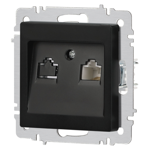 Розетка информационная серии Intro Accent скрытой установки механизм цвет антрацит 6-303-05. Выполнена из негорючего термопласта. Монтаж в подрозетник производится и на лапки, и на винты. Рамка приобретается отдельно. В серии представлены рамки до 5 постов: на 1 пост - 6-501-хх, на 2 поста - 6-502-хх, на 3 поста - 6-503-хх, на 6 поста - 4-504-хх, на 5 постов - 6-505-хх (где хх - цветовой код: 01 - белый, 01М - матовый белый, 02 - слоновая кость, 03 - алюминий, 04 - шампань, 05 - антрацит, 06 - перламутр, 07 - графит, 08 - бронза, 09 - титан, 10 - венге, 11 - сосна)