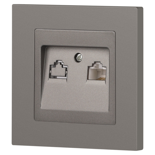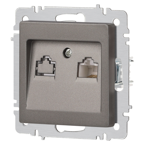 Розетка информационная серии Intro Accent скрытой установки механизм цвет титан 6-303-09. Выполнена из негорючего термопласта. Монтаж в подрозетник производится и на лапки, и на винты. Рамка приобретается отдельно. В серии представлены рамки до 5 постов: на 1 пост - 6-501-хх, на 2 поста - 6-502-хх, на 3 поста - 6-503-хх, на 6 поста - 4-504-хх, на 5 постов - 6-505-хх (где хх - цветовой код: 01 - белый, 01М - матовый белый, 02 - слоновая кость, 03 - алюминий, 04 - шампань, 05 - антрацит, 06 - перламутр, 07 - графит, 08 - бронза, 09 - титан, 10 - венге, 11 - сосна)