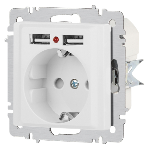 Розетка с USB с заземлением со шторками серии Intro Accent скрытой установки механизм цвет белый матовый 6-410-01М. Номинальные характеристики 16А 250В / 2,1А 5В. Выполнена из негорючего термопласта. Монтаж в подрозетник производится и на лапки, и на винты. Рамка приобретается отдельно. В серии представлены рамки до 5 постов: на 1 пост - 6-501-хх, на 2 поста - 6-502-хх, на 3 поста - 6-503-хх, на 6 поста - 4-504-хх, на 5 постов - 6-505-хх (где хх - цветовой код: 01 - белый, 01М - матовый белый, 02 - слоновая кость, 03 - алюминий, 04 - шампань, 05 - антрацит, 06 - перламутр, 07 - графит, 08 - бронза, 09 - титан, 10 - венге, 11 - сосна)