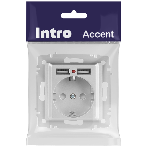 Розетка с USB с заземлением со шторками серии Intro Accent скрытой установки механизм цвет алюминий 6-410-03. Номинальные характеристики 16А 250В / 2,1А 5В. Выполнена из негорючего термопласта. Монтаж в подрозетник производится и на лапки, и на винты. Рамка приобретается отдельно. В серии представлены рамки до 5 постов: на 1 пост - 6-501-хх, на 2 поста - 6-502-хх, на 3 поста - 6-503-хх, на 6 поста - 4-504-хх, на 5 постов - 6-505-хх (где хх - цветовой код: 01 - белый, 01М - матовый белый, 02 - слоновая кость, 03 - алюминий, 04 - шампань, 05 - антрацит, 06 - перламутр, 07 - графит, 08 - бронза, 09 - титан, 10 - венге, 11 - сосна)