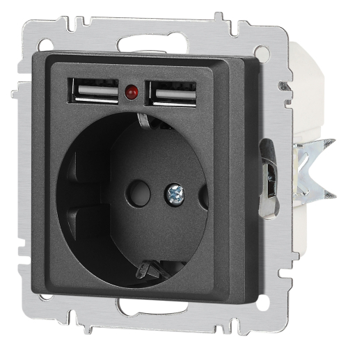 Розетка с USB с заземлением со шторками серии Intro Accent скрытой установки механизм цвет графит 6-410-07. Номинальные характеристики 16А 250В / 2,1А 5В. Выполнена из негорючего термопласта. Монтаж в подрозетник производится и на лапки, и на винты. Рамка приобретается отдельно. В серии представлены рамки до 5 постов: на 1 пост - 6-501-хх, на 2 поста - 6-502-хх, на 3 поста - 6-503-хх, на 6 поста - 4-504-хх, на 5 постов - 6-505-хх (где хх - цветовой код: 01 - белый, 01М - матовый белый, 02 - слоновая кость, 03 - алюминий, 04 - шампань, 05 - антрацит, 06 - перламутр, 07 - графит, 08 - бронза, 09 - титан, 10 - венге, 11 - сосна)