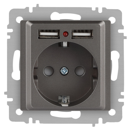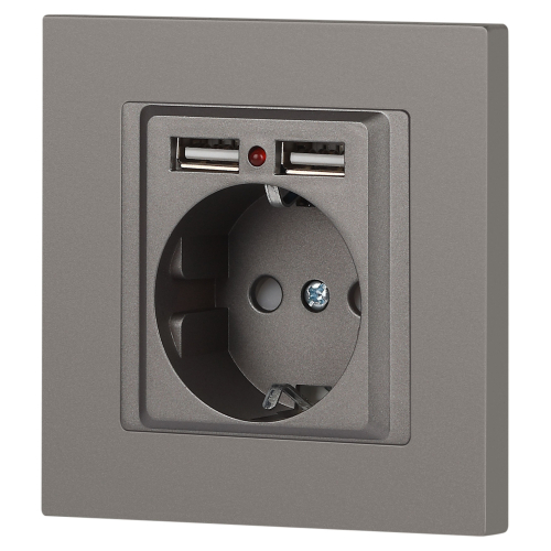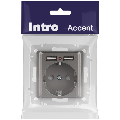 Розетка с USB с заземлением со шторками серии Intro Accent скрытой установки механизм цвет титан 6-410-09. Номинальные характеристики 16А 250В / 2,1А 5В. Выполнена из негорючего термопласта. Монтаж в подрозетник производится и на лапки, и на винты. Рамка приобретается отдельно. В серии представлены рамки до 5 постов: на 1 пост - 6-501-хх, на 2 поста - 6-502-хх, на 3 поста - 6-503-хх, на 6 поста - 4-504-хх, на 5 постов - 6-505-хх (где хх - цветовой код: 01 - белый, 01М - матовый белый, 02 - слоновая кость, 03 - алюминий, 04 - шампань, 05 - антрацит, 06 - перламутр, 07 - графит, 08 - бронза, 09 - титан, 10 - венге, 11 - сосна)