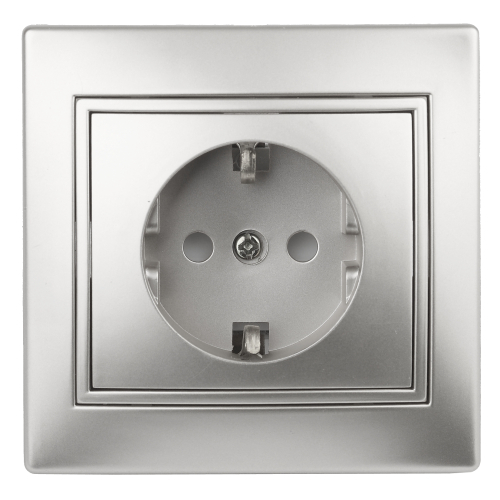 Розетка серии Intro Plano скрытой установки цвет алюминий 1-202-03. Номинальные характеристики 16А 250В. Розетка выполнена из керамики, укомплектована одноместной рамкой, оснащена винтовыми клеммами. Клеммы с двумя отверстиями позволяют соединять соседние розетки шлейфом. Установка в подрозетник производится как на монтажные лапки, так и на винты. Для установки 2-х и более устройств в несколько подрозетников в ряд дополнительно используются многоместные рамки: 2-х постовая - 1-502-хх, 3-х постовая 1-503-хх, 4-х постовая - 1-504-хх (где хх - цветовой код: 01 - белый, 02 - слоновая кость, 03 - алюминий, 04 - шампань, 05 - антрацит, 10 - венге, 11 - сосна).