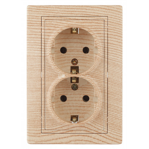 Розетка двойная 2-я серии Intro Plano скрытой установки цвет сосна 1-205-11. Номинальные характеристики 16А 250В. Розетка выполнена из керамики, укомплектована одноместной рамкой, оснащена винтовыми клеммами. Клеммы с двумя отверстиями позволяют соединять соседние розетки шлейфом. Установка в подрозетник производится как на монтажные лапки, так и на винты.