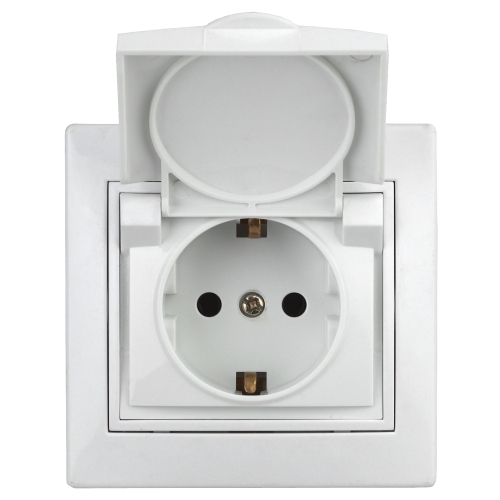 Розетка с заземлением 2P+E Schuko с крышкой шторками, 16А-250В, IP20, СУ, белый Intro Plano 1-207-01