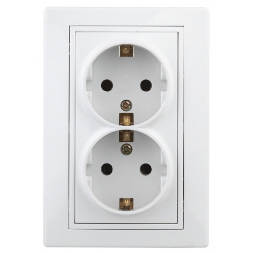 Розетка с заземлением двойная 2X2P+E Schuko со шторками, 16А-250В, IP20, СУ, белый Intro Plano 1-208-01