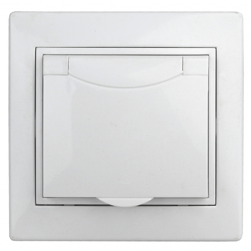 Розетка 2P+E Schuko с крышкой штор., 16А-250В, СУ, б.л., Plano, белый