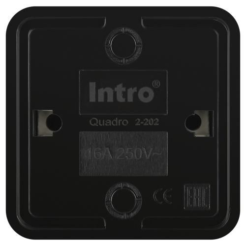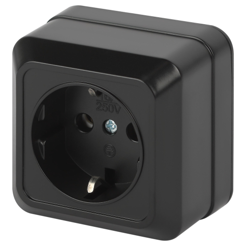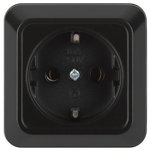 Розетка одинарная с заземлением серии Intro Quadro открытой установки цветантрацит 2-202-05. Номинальные характеристики 16А 250В. Розетка выполнена из керамики, стали и латуни, оснащёна винтовыми зажимами.