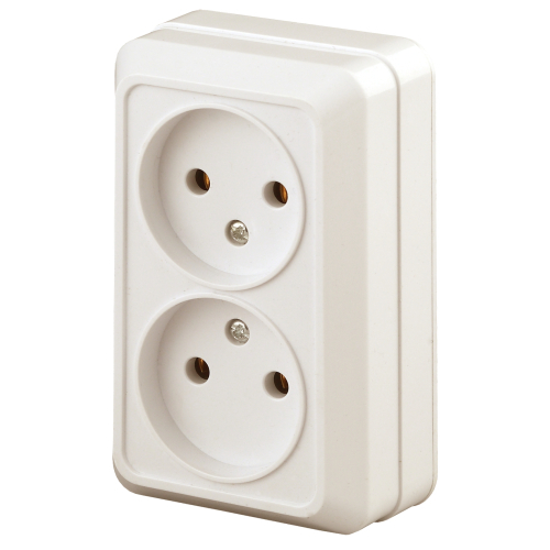 Розетка Intro Quadro 2-203-02 двойная без заземления 2х2P, 16А-250В, IP20, ОУ, Quadro, слоновая кость