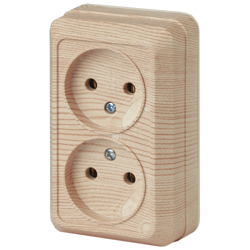 Розетка Intro Quadro 2-203-11 двойная без заземления 2х2P, 16А-250В, IP20, ОУ, сосна