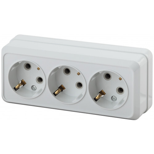 Розетка Intro Quadro 2-206-01 с заземлением трехместная 3х2P+E, 16А-250В, IP20, ОУ, белый