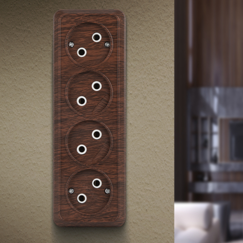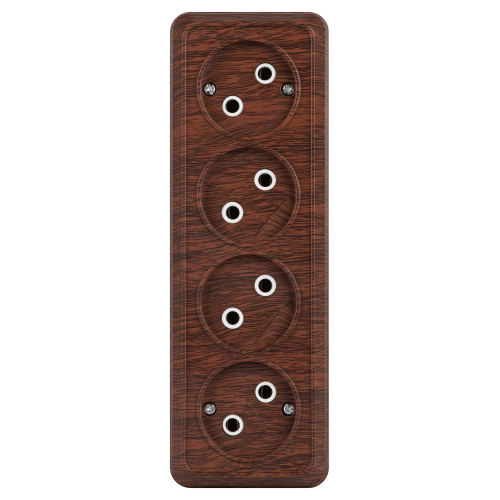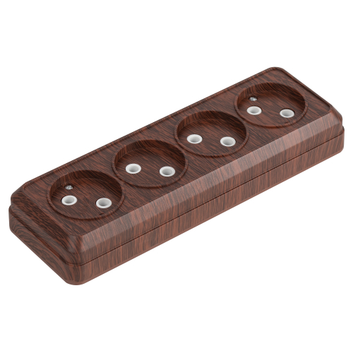 Розетка четырехместная серии Intro Quadro открытой установки цвет венге 2-207-10. Номинальные характеристики 16А 250В.,корпус выполнен из платика (термопласт). Оснащёна винтовыми зажимами.