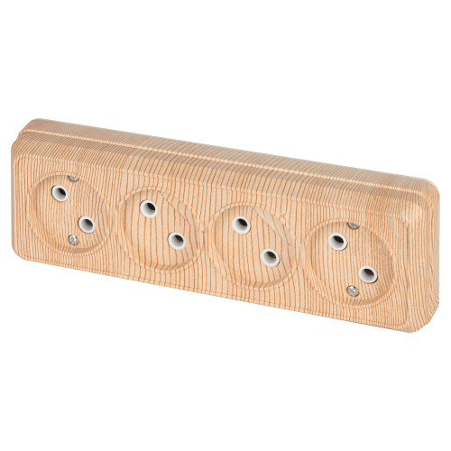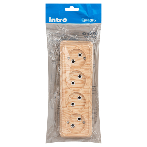 Розетка четырехместная серии Intro Quadro открытой установки цвет сосна 2-207-11. Номинальные характеристики 16А 250В. Розетка выполнена из пластика (термопласт), оснащёна винтовыми зажимами.