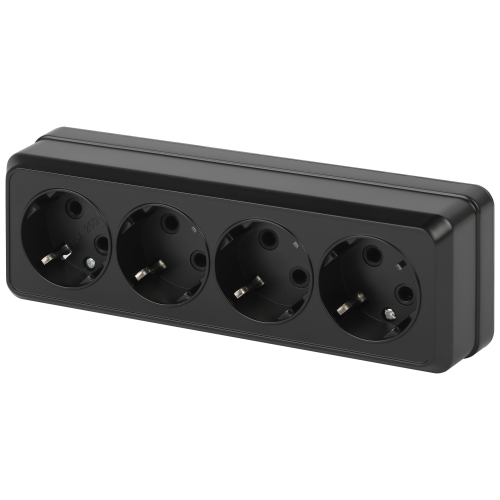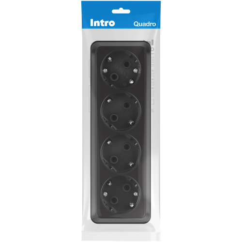 Розетка четырехместная с заземлением Intro Quadro 2-208-05 цвет антрацит. Изготовлена розетка из термопласта и латуни, что гарантирует долгий срок службы – до 10 лет. Она подходит для открытого монтажа и имеет степень защиты оболочки IP20. Номинальное напряжение составляет 250В, а номинальный ток – 16А.